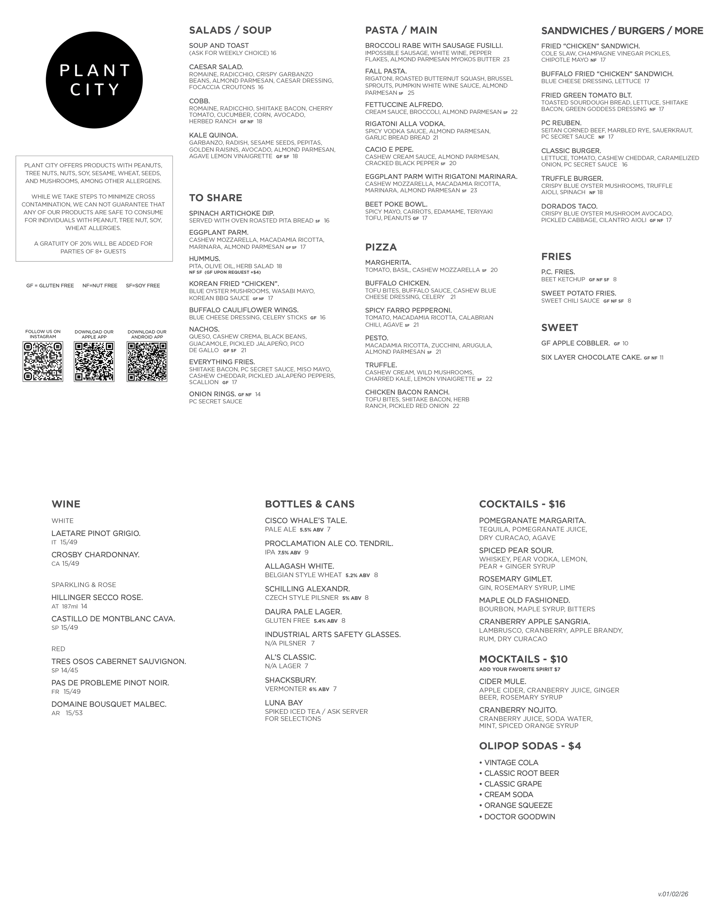 Plant City Menu